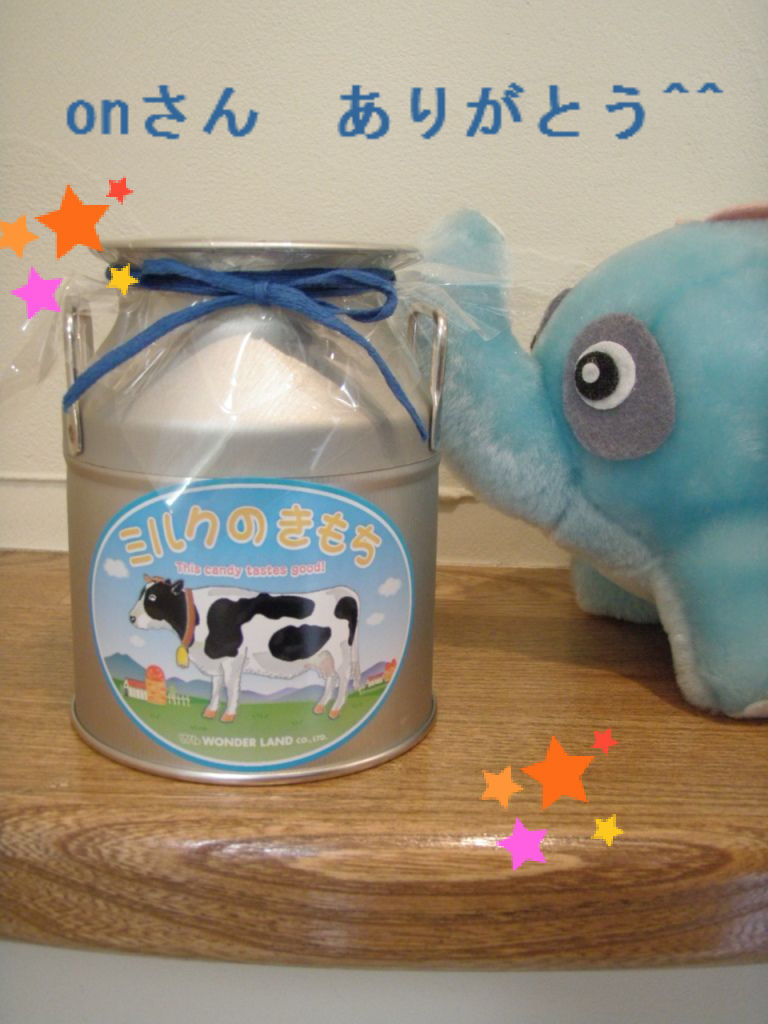 2011年06月10日 ミルクのきもち 昨夜はすごい雷と雨に驚きでしたね。゜(´Д`)゜。まさにバケツをひっくり返したような雨今日は昨日とは打って変わって過ごしやすいですね(*・ω・)ノ本日のお題の「ミルクのきもち」はこちらです(*´∇`*) ←「ミルクのきもち」キャンディー .。゚+.(・∀・)゚+.゚K農場に行ったONさんよりお土産を頂きました(。・ω・)ノ゙キャンディーの入っている缶も実際使われるミルク缶の形をしていてかわいいです「ミルクのきもち」を考えつつ、頂きたいと思います〜(・∀・)ONさん、ありがとうv( ̄∇ ̄)v < 前の記事次の記事 >