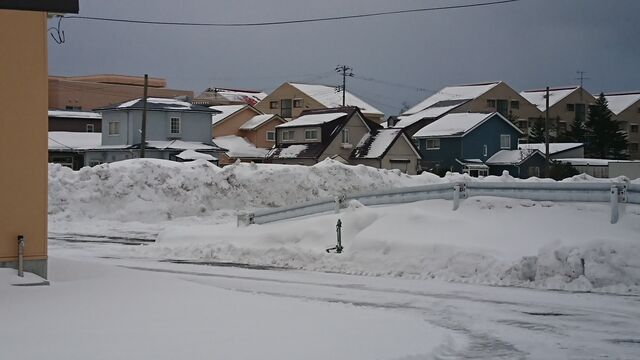 向かいの自動車学校のコースも例年以上の雪の壁に仕上がってる