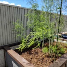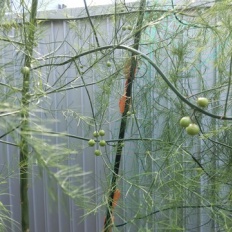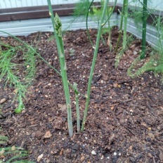2025年07月05日 社長のつぶやき 家庭菜園 根切り虫にやっつけられ植え替えても元気のなかった2株のアスパラ やっと細いながら2本目がニョキッと顔を出しました(^^)/ これっ! 復活の兆しあり! かな?